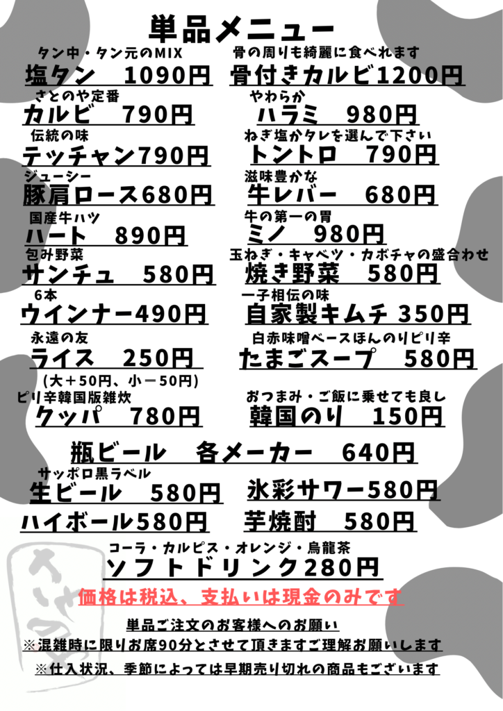 いろんな部位のお肉を食べたい方のための単品メニューとドリンクの紹介